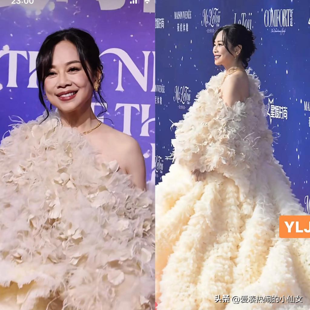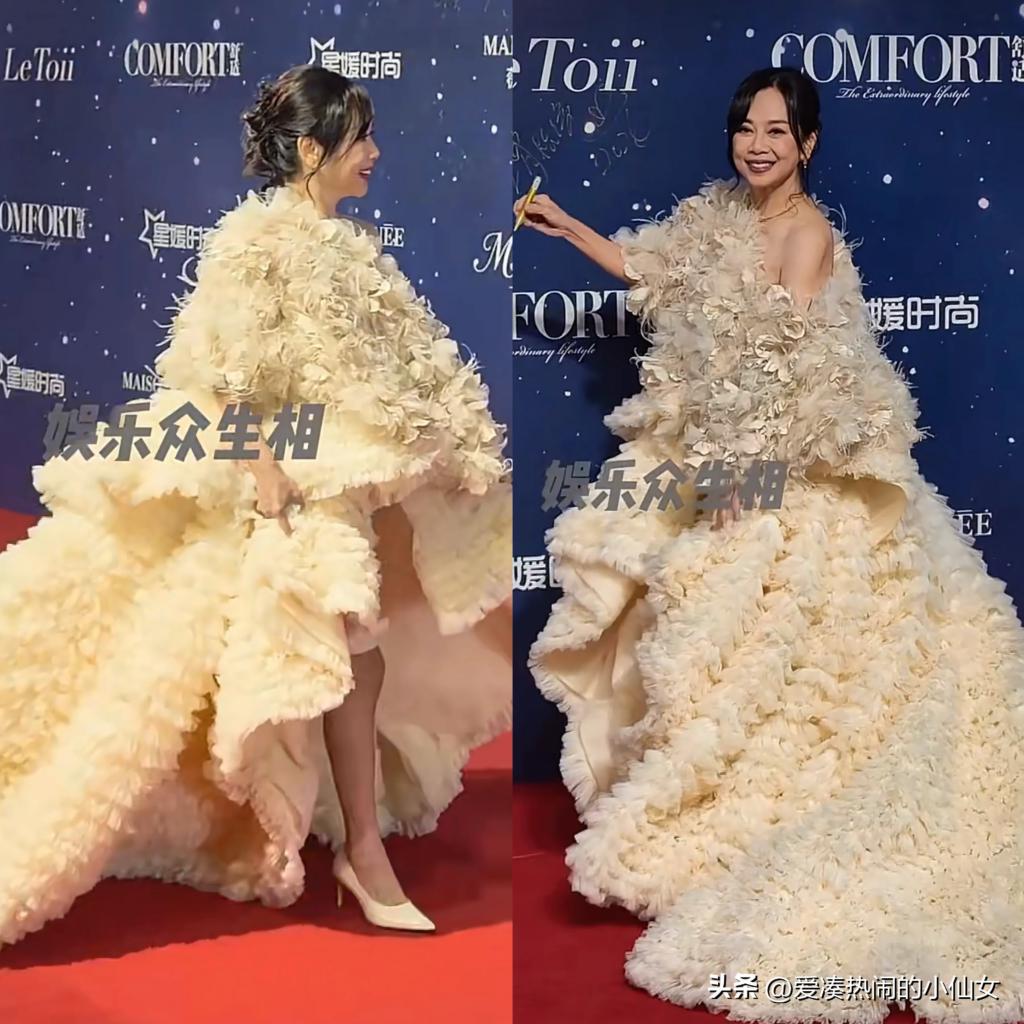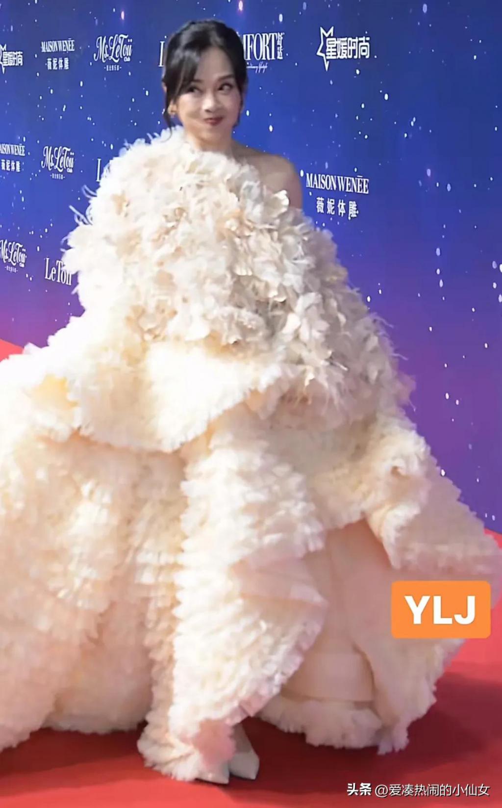 55 岁的她,以一条超级大的蓬蓬裙亮相,其实有点略显累赘的。
