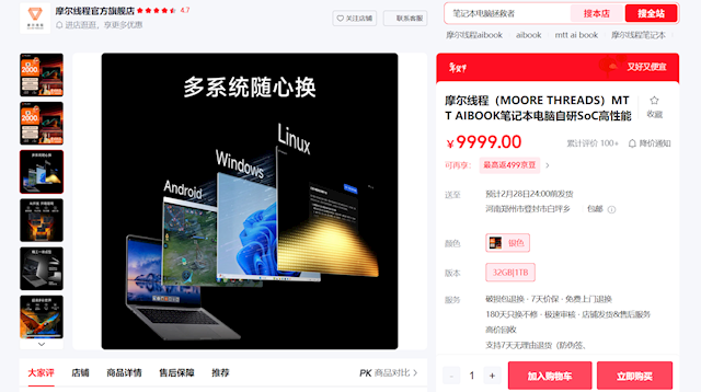 机身采用 6 系铝合金 CNC 工艺打造,重量1.5kg,便携性表现出色;内置70Wh容量电池;接口方面则配备3个USB-C 接口。目前该产品已在京东摩尔线程官方旗舰店上架,售价9999元。