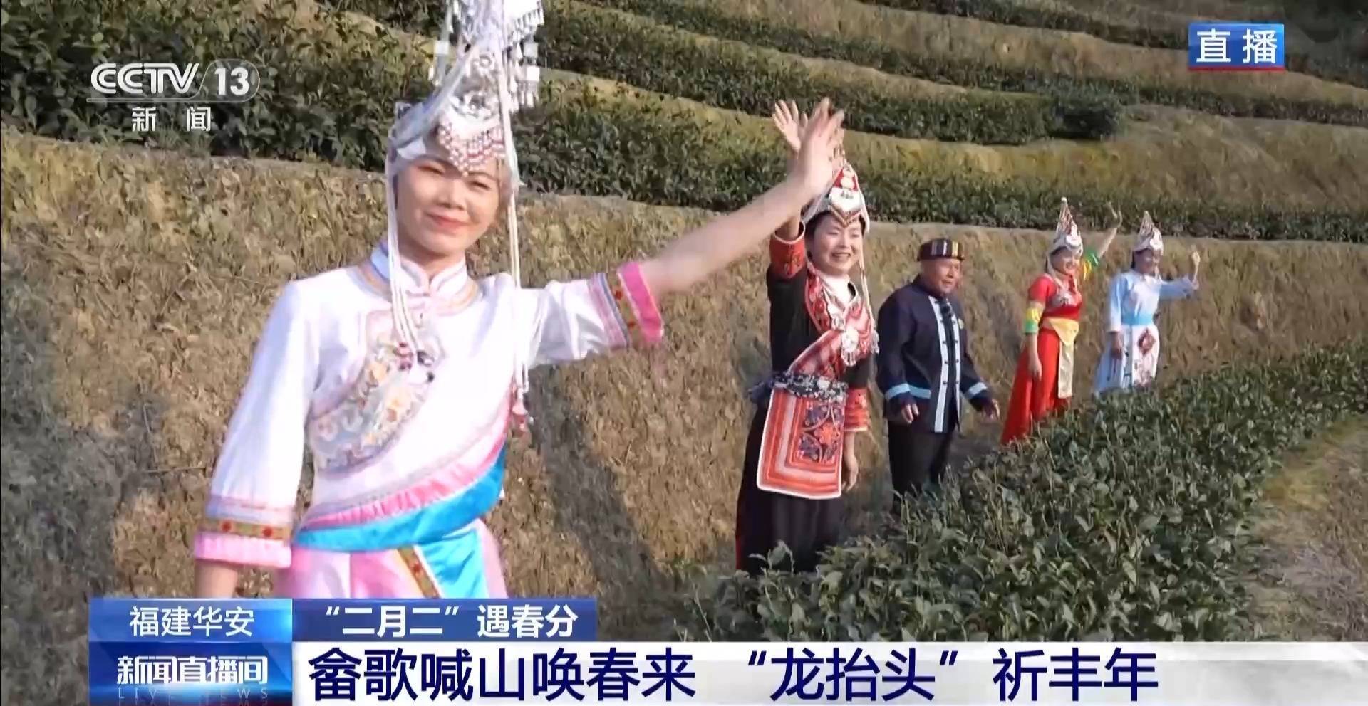 在茶山上,一位长者正用古老的畲族语言唱畲歌。在他身旁,畲族的阿哥阿妹们身着凤凰盛装,齐声喊山开春,用最响亮的声音宣告2026年春耕正式启幕。这首畲歌唱的是从一月到十二月的节气和农事,字字句句都是祈愿新的一年风调雨顺、五谷丰登。